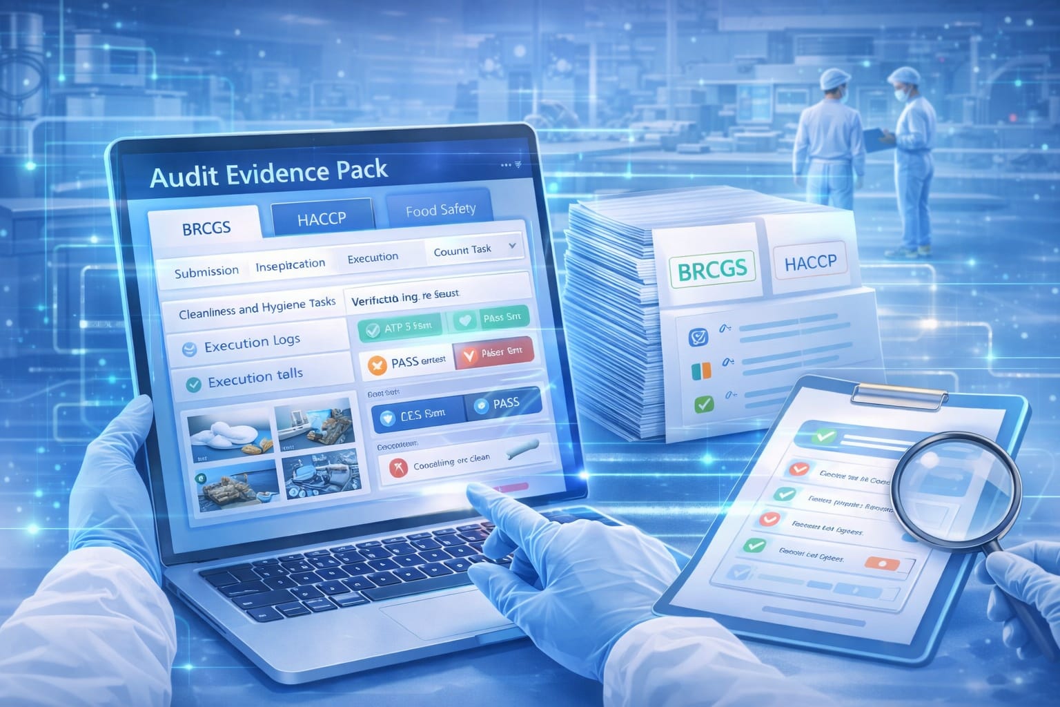 All sanitation actions, verification results, and corrective actions are recorded in a structured evidence chain. The system generates instant audit evidence packs aligned with BRCGS, HACCP, and food safety inspections.